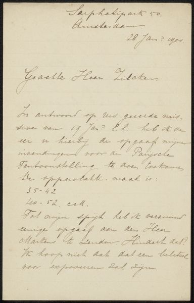 Curator: At first glance, I see graceful script—almost like strands of elegantly draped silk. Editor: That's a lovely image. We are looking at “Brief aan het bestuur van de Nederlandsche Etsclub”, or “Letter to the board of the Dutch Etching Club,” a drawing in ink on paper by Wally Moes, probably created around 1888. Curator: A letter indeed. It is so different to think of calligraphy as visual art and not just information made beautiful. Yet here it is, framed and hung in a gallery! My eye is trying to interpret what the writer has captured in these sinuous loops. What sort of world do you see emerging from these symbols? Editor: One where correspondence feels like a precious artform, certainly. And though I can't read the language of the letter, I can feel its purpose. Look at how some of the strokes thicken with emphasis. I sense the personality behind each carefully weighted mark. Curator: It's amazing how expressive ink can be, carrying intention, emotional depth, even humour if the artist so wishes. And what a lovely touch she adds at the very bottom with her elegant, almost performative, signature, ‘Wally Moes.’ Editor: I get a sense of timelessness. This letter from another era brings into question ideas about technology and our human compulsion for written communication. A relic! Curator: The idea that communication itself can be considered art – something that carries culture, tradition, the memory of the hand... Editor: That’s something to ponder as we leave the gallery today. Thank you, Wally Moes.