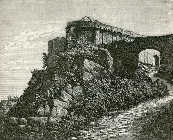 Editor: This is Giuseppe Barberis's "Antica Chiesa Di S. Tommaso" from 1898, created using pen, ink, and etching techniques. There’s something very melancholic about the way the church is rendered against this somewhat desolate landscape. What catches your eye in this piece? Curator: I think it’s powerful to consider the historical context. Notice how the ruin of the church is positioned within the landscape. Consider the rise of photography during this period; art started engaging with different kinds of representation, truth-telling, and narrative. Etchings like this allowed for the wide distribution of images, documenting forgotten spaces like this church, making them accessible. Who controlled the narrative around these ruins and why does it matter? Editor: So it’s not just a picture of an old church, but also speaks to issues of access and representation? Curator: Exactly! How does this image function as a form of preservation, a visual record in a time of immense social and technological change? What are the politics of memory embedded here, the unspoken narratives of power and its effects on marginalized spaces? Think about who gets remembered, and by whom. Editor: I didn't think of it that way. I was only thinking about the visual. I see the landscape in a new light, the old walls overgrown by nature now suggest something beyond decay. Curator: I’m glad you see that, too. There’s beauty in its state of decay. Ruins challenge dominant narratives by reminding us of change. Consider the relationship between nature and the structures, then consider their relationship to contemporary structures and politics of power. Editor: That’s such a cool way to frame it. This etching seems like an early form of social commentary, beyond its aesthetic value. Curator: Precisely. Hopefully, it encourages you to think critically about art’s role in shaping our understanding of history and power structures, who gets to document it and how we engage with them now.