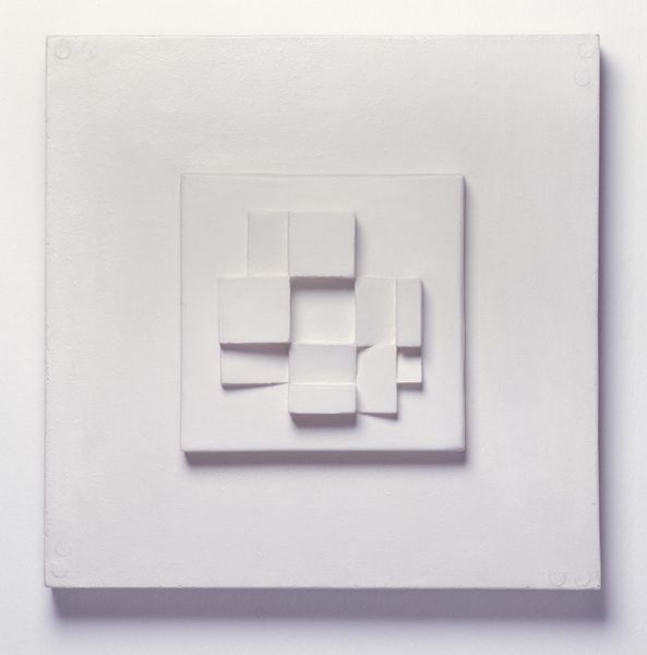 Editor: Saloua Raouda Choucair's "Poem Wall" at the Tate Modern is a striking piece, made of what appears to be painted concrete blocks. It feels almost architectural in its construction. What strikes you about the process and materials in this work? Curator: Considering Choucair’s interest in modularity, it begs the question, how does the act of physically assembling these blocks—a very hands-on process—inform the 'poem' it represents? Is the labour involved essential to understanding its meaning beyond a purely formal arrangement? Editor: That's a great point! It's easy to get lost in the visual, but thinking about the work that went into its construction adds another layer. Curator: Precisely. Thinking about the time, effort and resources informs our understanding beyond just aesthetics. Editor: I'll definitely look at similar works with that perspective from now on! Thanks!