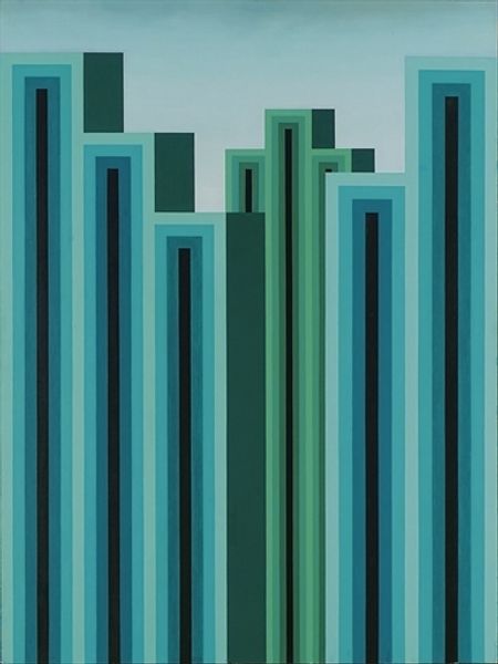 Invisible City 2001 is a series of six digital prints based on an image from Yass's work of the same title created in 1998. This earlier work comprises four photographic transparencies displayed in light boxes and four short videos. The photographs were taken in Tokyo and depict street scenes taken from the same viewpoint looking 'north', 'north-west', 'north north-west' and 'south'. The digital prints are all component parts of the image subtitled 'north-west' in the original work. Their own subtitles, consisting of the words 'north-west' together with a letter and number reference, such as D6 or D4, suggest map co-ordinates. However these 'co-ordinates' do not follow a logical structure related to the grid they apparently refer to and seem random in their selection and allocation. The digital prints are similar in size to the transparency from which they are derived. Thus scaled-up, these segments of the original represent a greater degree of abstraction. Some, such as Northwest F6, have virtually no recognisable elements and have become compositions in vivid colour. Others, for example Northwest F3, clearly depict a section of a tall modern building illuminated romantically in blue and pink evening light. Light and its manipulated effects are important themes in Yass's work. At an early point in her career she discovered the possibility of reversing the positive and negative aspects of photographic film through an error. She has subsequently experimented and perfected a technique which has become her signature. Each image is produced by taking two photographs, several seconds apart, and then superimposing them. One is positive, the other negative, resulting in the light or white areas of the positive being filled in by the colour produced by the negative. Yass usually uses an intense blue, similar to the 'Chartres blue' of medieval stained glass windows, heightening the atmospheric and sometimes even transcendental effects of her image. In Invisible City the negative image is slightly smaller than the positive image, resulting in white halos around the 'negative' blue areas. The short time gap between photographs and the movement of the traffic in the busy street have contributed to the blur around patches of neon light. The buildings themselves, behind the luminous neons, provide ghostly support structures for the artist's study of city lights. Yass derived the title Invisible City from Italo Calvino's (1923-85) book of the same name (published 1972). The book is a sequences of essays describing fantastical imaginary cities fictionally recounted by Marco Polo (1254-1324) to Kublai Kahn (1215-94). Calvino's preface describes the idealising allure of the imaginary, unknown foreign city which is inevitably destroyed by the corrupting reality of conquest and attendant knowledge. Yass's images coupled with Calvino's title evoke aspects of the city which are present but which go unnoticed. Through the virtuosity of her technical intervention, she has transformed a constantly moving, anonymous and physically alienating modern environment into a space for fantasy, provided by colour and light. The portfolio Invisible City 2001 was printed and proofed at Chromograph in Woverhampton, England and published by Alan Cristea Gallery, London in an edition of forty plus ten artist's proofs. This is number twenty-nine in the edition. The images may be exhibited in any order. Further reading:Catherine Yass: Invisible City, exhibition brochure, Alan Cristea Gallery, London 2001, reproduced (colour) [pp.2-4 and 6-8]Parveen Adams, Greg Hilty, Catherine Yass: Works 1994-2000, London 2000, pp.5-6, 57 and 101 Elizabeth ManchesterMarch 2002