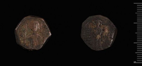 This coin, commissioned by Maurice Tiberius, is a small but potent object made of copper. Its circular form, although slightly irregular from age, provides a contained space for symbolic representation. The surfaces, worn with time, reveal a muted palette of browns and reddish hues, hinting at the material's degradation and the passage of centuries. Look closely at the composition, where the incised lines and shapes form a portrait and lettering. The very act of imprinting these images and texts onto a coin transforms it from mere currency into a powerful signifier of authority and identity. Coins like this are not just mediums of exchange, but deliberate constructions designed to communicate specific messages about the ruler and the empire. Consider how the physical qualities, like weight and texture, contribute to its function as a tool for trade and governance. This coin, therefore, exists at the intersection of material reality and symbolic meaning, inviting us to decode the complex relationship between power, representation, and value.