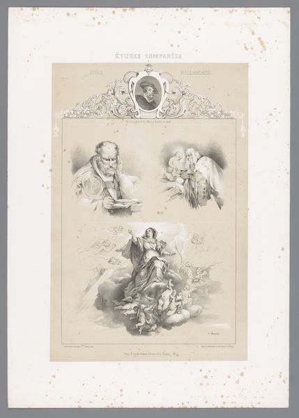 This print by Charles Nicolas Lemercier, presents a comparison of studies after Alexandre-François Desportes and Jean-Baptiste Oudry, delving into the heart of the hunt. The upper scene evokes a sense of anticipation, with a poised dog and fallen fowl. Below, a visceral depiction of dogs fighting over their prey. Dogs, throughout art history, symbolize fidelity and vigilance, but here, they embody raw instinct and struggle. This primal struggle echoes in myriad forms across time, from ancient Roman mosaics depicting gladiatorial combat to Renaissance allegories of vice and virtue. Observe how the motif of the hunt, often ennobled, here reveals the brutality inherent in survival. The tension between the refined artistry and the violent subject matter creates a powerful psychological charge, tapping into our collective memory of nature, red in tooth and claw. The cyclical nature of predator and prey persists, transformed yet recognizable, inviting us to reflect on the enduring aspects of human existence, as filtered through our cultural memory.
