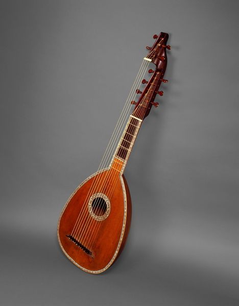 Curator: This exquisite "Guitar" dates back to 1697 and was crafted by Jean-Baptiste Voboam. It’s currently housed at the Metropolitan Museum of Art. The Baroque styling, with its elaborate carvings and use of wood, immediately strikes me as opulent. What are your initial thoughts? Editor: I'm fascinated by the sheer amount of labor that went into creating this guitar. I’m curious about the cultural context that might have fueled such decorative excess on an instrument. What do you see when you look at this guitar? Curator: I see a confluence of material resources and social status. Voboam’s guitar represents far more than a functional instrument; it’s a potent symbol of wealth and power. Consider the global networks required to acquire the various materials—the specific types of wood, the imported decorative elements, and the tools used for such precise carving. How does its status as both an art object and a tool challenge conventional definitions? Editor: That’s interesting. I hadn't thought about it as challenging definitions of "art." Was it unusual to put so much labor into instrument making? Curator: It speaks to a blurring of lines between artisan and artist, craft and "high" art. The guitar’s function is almost secondary; its primary purpose is to signal the owner’s sophisticated tastes and economic strength through conspicuous consumption. The labor, often underappreciated, becomes part of its artistic value. What impact did pieces like this have on luthier techniques moving forward? Editor: I now appreciate how the material aspects and labor involved highlight social stratification in the Baroque era. Viewing it through a materialist lens has truly expanded my understanding. Curator: Precisely. It allows us to move past aesthetic appreciation and into critical social analysis. Now, go and see how it sounds when played.
