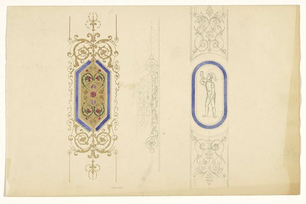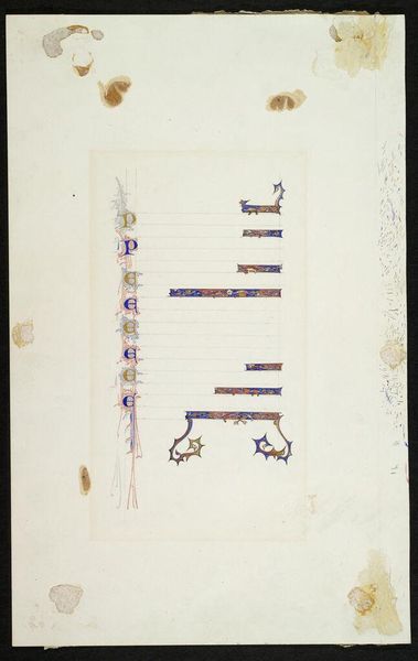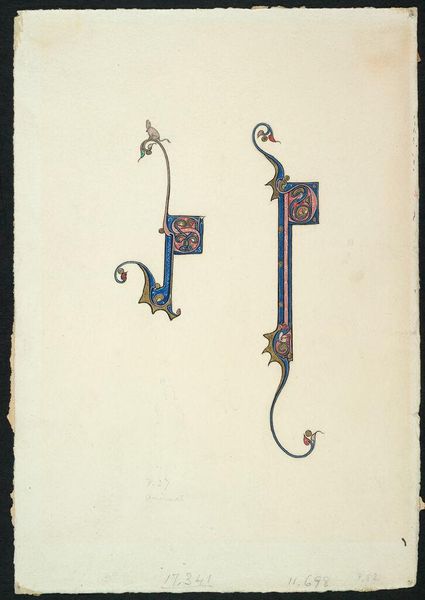 Editor: This is Martin Mower’s piece “Letters P and E, after French Gothic manuscript.” I’m struck by the delicate, almost ethereal quality of the ink and watercolor. How do you approach understanding a piece like this? Curator: I look at the materials first. The use of ink and watercolor suggests a focus on accessibility. It speaks to a system of production. It invites questions about who had access to these techniques, and the social context surrounding the creation of illuminated manuscripts. Editor: So, you’re seeing the materials as clues to understanding the art’s role within a larger system? Curator: Precisely! What was the labor involved in preparing these pigments? Who was the intended audience? Exploring these questions anchors the artwork to the tangible world. Editor: That’s given me a new appreciation for the piece as more than just decoration, but as part of a cultural and material network. Curator: Indeed! It is so interesting to realize the means of creation and consumption.