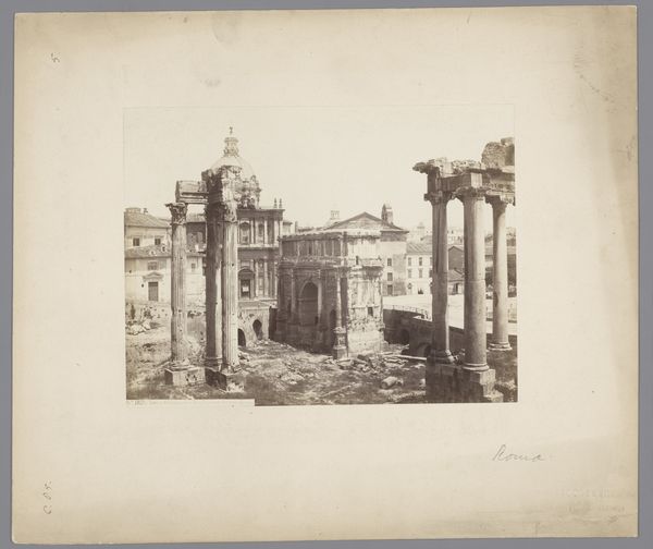 Gustave Eugène Chauffourier made this photograph of the Arch of Titus and the Colosseum in Rome sometime in the late 19th or early 20th century. The photograph itself, though seemingly straightforward, involves a complex layering of material processes. Light-sensitive chemicals are applied to paper, a lens focuses the image, and then development techniques reveal the final print. This was a relatively new technology at the time, but it transformed the way people perceived the world. Consider what it meant to capture these ancient monuments with such fidelity, freezing a specific moment in time. Photography democratized access to these wonders, making them available to a wider audience. It also changed the way we consume images, making everything reproducible, turning history into a commodity. Chauffourier's work encourages us to consider photography not just as a recording device, but as a craft deeply intertwined with the social and cultural forces of its time.