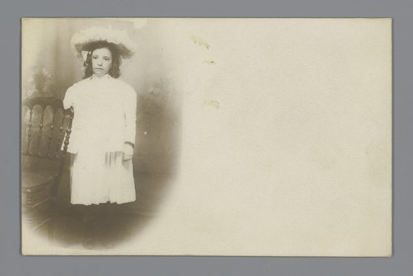 Curator: This is an arresting pictorialist photograph entitled "Portret van een vrouw met hoed en fiets in de hand," created sometime between 1880 and 1920 by Hildur Björklind. Pictorialism often mimics painting through soft focus and evocative subjects. Editor: My immediate thought is how it encapsulates the 'New Woman' of that era. The bicycle itself is such a powerful symbol of newfound independence. It just feels charged. Curator: Indeed! The bicycle transformed social mobility, granting women increased autonomy. In a way, the bicycle served as a liberation device and iconographical element in its own right. What feelings and ideas resonate most strongly when you look at this? Editor: There's this sense of poised confidence. She's dressed formally, but there's a defiance in her stance and gaze. We could explore the way women claimed physical space at the turn of the 20th century by moving across spaces unescorted. Also, I read her clothing as part of a visual rhetoric, perhaps, indicating status while subverting restrictions. Curator: That resonates, and you’ve introduced another layer! I’d agree that her style feels calculated. She appears determined but remains elusive, suggesting societal ambivalence toward the 'New Woman.' The photographer's focus seems less on capturing her specific likeness and more on representing the modern woman's ideals during the transitional period. Editor: Precisely. I see echoes of the suffrage movement too. There's a subtle but unmistakable act of self-definition happening. Do you agree that women riding freely—challenging conventions–could be linked to contesting male dominance? Curator: Certainly! This photo subtly captures both freedom and the tension that came with it. I think our reading, by highlighting a dialogue between image, history, and psychology, helps make it even more powerful! Editor: I couldn't agree more. This image reflects evolving attitudes towards femininity, and encourages discussions of the shifting gender dynamics in art history.