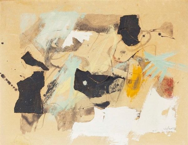 Nicolas Carone’s painting, Ear of Earth, is a world of muted tones and gestural marks that feels both urgent and considered. It’s like he’s digging into the canvas, trying to unearth something. The earthy palette, thick paint, and visible brushstrokes make me think of the physical act of painting. Look at the way the colors blend and bleed into each other, creating a sense of depth and texture. There’s a dark mass on the lower left, like a shadow or a secret. It anchors the composition, giving weight to the lighter, more ethereal forms above. The paint is applied in layers, each stroke building upon the last, creating a rich, tactile surface that invites you to reach out and touch it. I see echoes of De Kooning's raw energy in Carone's mark-making, but with a more grounded, elemental feel. It's a conversation across generations, a reminder that art is never created in a vacuum. It's an ongoing dialogue, a process of exploration and discovery.