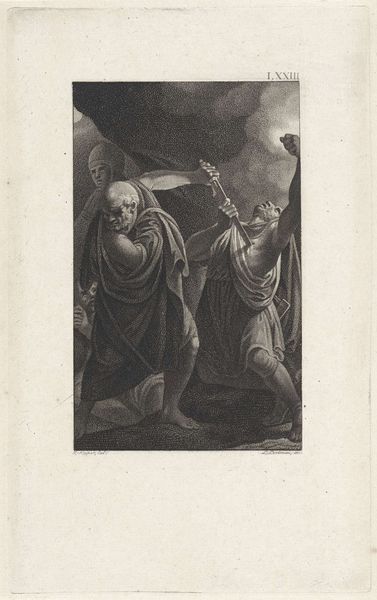 Curator: Look at the stark contrast and simplified rendering in "Monnik en een vleermuis", possibly created between 1670 and 1724 by Jacob Gole. What’s your immediate reaction to the piece? Editor: Disquieting! The intense, almost grotesque realism of the monk's face juxtaposed with the dark silhouette of the bat above creates a distinctly unsettling mood. The tight, circular composition amplifies this feeling. Curator: Gole, working primarily with engraving techniques, made prints intended for a burgeoning market that favored accessible, morally instructive subjects. Here, the burin’s incisive cuts shape not just form, but commentary. Editor: I'm drawn to the line work—notice how the density and direction create shading and texture on the monk's robes and face. There's also an intriguing dynamic between the coarse lines defining the figure and the smoother areas that model the light. It creates a sense of depth and volume that defies the simplicity of the composition. Curator: This print satirizes the clergy—reflect on how printmaking allowed this critique to reach a broad audience. It cleverly intertwines craft and cultural critique through caricature and wordplay. Look closely; the poem is about celebrating ignorance, linking to the monk's state. Editor: Absolutely. The material itself, engraving on a metal plate, speaks to the precision and control required. The limitations of the medium—black lines on white paper—are overcome by the skill in rendering detail and emotion. And notice, how the bat mirrors his obliviousness in its darkness. Curator: I see it too! The text at the bottom informs our reading. It invites a material understanding of its circulation and the economic circumstances surrounding print production. These objects fueled discourse across social strata. Editor: Considering the formal elements, it's fascinating how the artist uses light and shadow, coupled with such unflattering angles, to convey a complex message about knowledge and delusion. The contrast is more than aesthetic. It is symbolic. Curator: The convergence of craftsmanship, market dynamics, and sharp social observation is fascinating. Editor: Indeed. From a formal viewpoint to social dimensions of consumption—so many interesting things happening here in Gole’s deceptively simple piece!