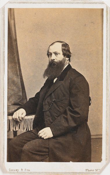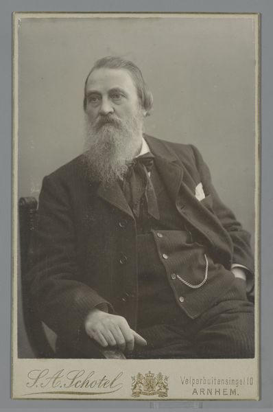 This portrait of C.W. Opzoomer, professor at the University of Utrecht, was made by Christaan Marcussen in the Netherlands, during a time when photography was becoming increasingly accessible. Opzoomer's stern gaze and formal attire speak to the cultural values of the time, emphasizing intellect, authority, and social standing. As a professor of philosophy, Opzoomer was part of a growing academic elite that helped shape public discourse and national identity. This image serves not only as a personal memento but also as a representation of the power and prestige associated with academic institutions. Consider the role of the photographer as well. Marcussen likely operated within a network of studios catering to the needs of a rising middle class eager to participate in the visual culture of the time. To fully understand this portrait, we might turn to university archives, genealogical records, and period publications. Such research would reveal the complex social and intellectual networks that shaped the world of both sitter and artist.
