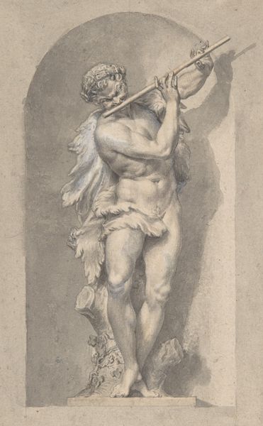 This drawing of Bacchus in a Niche was made by an anonymous artist, using gray wash over graphite. The artist has used the wash to create subtle gradations of light and shadow, giving the figure a sculptural presence. You can almost feel the weight of the body, the texture of the drapery, and the coolness of the stone niche. Note the contrast between the smoothly rendered body and the sketchier treatment of the background. This suggests the artist was primarily interested in capturing the form of the statue, rather than its surroundings. The drawing may have served as a record of the artwork, or as a study for a larger composition. We might consider the tradition of drawing itself: it’s a readily portable medium, suited for travel and for quick notation, and can be learned relatively easily. Looking closely at this artwork, we can appreciate the way that materials and making processes intersect with broader artistic and social concerns. Drawings like this one help us understand the history of art not just as a sequence of masterpieces, but as a complex web of practices and relationships.