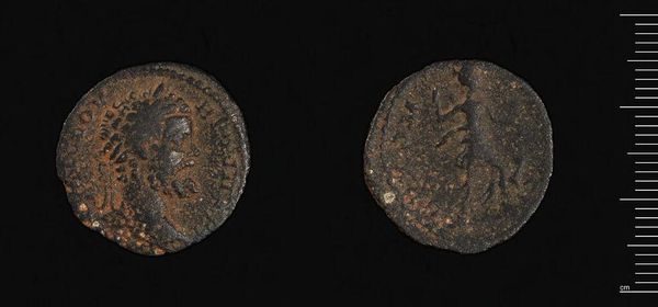 Curator: We're looking at a coin from Colonia Bostra, crafted under Severus Alexander. Notice the weight: just over eight grams. Editor: It's haunting, this worn profile. The patina speaks of centuries, doesn’t it? Curator: Indeed. It reflects the emperor's image, but consider how these coins were circulated and used to broadcast power. Editor: The composition itself is interesting – the circular form containing the bust, framed by the inscription... it creates a sense of enclosure. Curator: And a sense of Roman authority. Coins like these were miniature billboards, reinforcing the emperor’s presence throughout the empire. Editor: It makes one ponder the layers of history etched on the surface. Curator: Precisely. Beyond its intrinsic material value, it’s a portal into the socio-political landscape of its time. Editor: I appreciate the precision and care evident in such a small object, a potent display of governance.