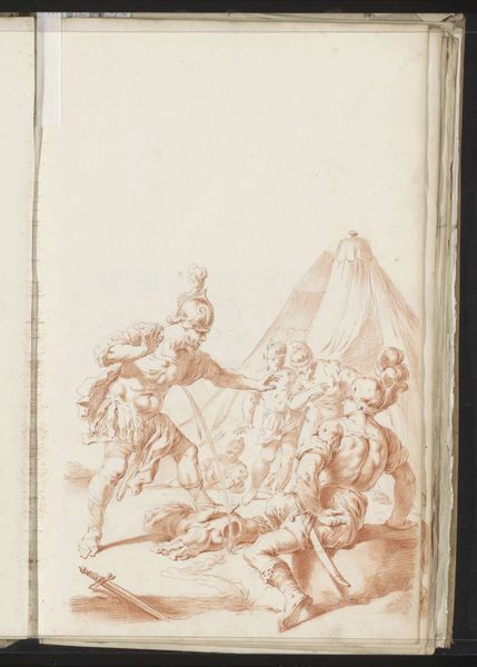 Curator: This striking ink drawing from 1701 is titled "Pictura," or "Painting," and it’s by the Dutch artist Jacob Toorenvliet. The piece presents an allegory of the art of painting itself. Editor: My immediate impression is one of intricate detail and lightness. Despite being a pen and ink drawing, there’s an ethereal quality to it, almost like a dream. I am particularly drawn to its composition and the symbolism imbued within the allegorical elements. Curator: Indeed. Toorenvliet created this artwork during a time when the Dutch Republic was transitioning into the Enlightenment, and representations of art were common ways for academies to display their influence. Here, he depicts Pictura, the embodiment of painting, hard at work. Editor: That artistic self-awareness is fascinating, especially when we situate it within that moment of societal transition. The almost didactic portrayal makes one think of a particular mission ascribed to art—what are the political dimensions and intellectual debates embedded here? The bust and sculptural figures around her – do you see a clear effort to legitimize a new kind of representation? Curator: Precisely! The inclusion of the bust and sculptures points towards the artist wanting to demonstrate knowledge and appreciation for classical ideals and learning, reflecting the period’s artistic values. Editor: It’s hard not to note the presence of that cherubic figure with what appears to be a memento mori near the lower corner. The allegorical nature is reinforced by such symbols that urge a dialogue of the self in this construction of art. Does this symbol affect the viewing of "Pictura," making one ask more questions? Curator: The presence of that angel serves, in part, to remind the viewer of life's transient nature. Allegories were not merely about art’s virtues, but were tools for societal reflections on morality. The dialogue with the self can become a wider look at culture. Editor: Seeing that the woman holds the brush, one begins to recognize an embodiment of the female gaze as a conduit of painting's role. This further inspires me to situate my perspective and question that kind of historical intersection. I must recognize Toorenvliet’s work beyond the purely visual level. Curator: And beyond a presentation of technique. Looking at this again, I note the skill and vision embedded within Toorenvliet's piece, echoing a drive to give visibility to classical styles in a changing intellectual atmosphere. Editor: Yes, by reflecting on this interplay of visibility, we allow ourselves to recognize, and reflect on art with much more inclusive eyes.
