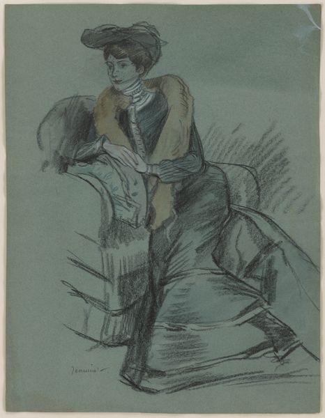 Théophile Alexandre Steinlen made this study of a woman, date unknown, with colored pencils on paper. These are humble materials, far from the traditional oil paint or bronze of fine art. Look closely at the cross-hatching that models the woman’s form. Notice the many layers of strokes, giving the drawing richness and depth. This wasn't a quick sketch, but a sustained engagement with the subject. Steinlen wasn’t just recording an image, he was also thinking through it, working out the volumes and textures with his hand. In its own way, this is an act of labor too, not unlike the woman depicted, who is likely a domestic worker. Consider the social context: Steinlen was active at a time of great upheaval and inequality, and often depicted the lives of working-class people in Paris. By using accessible materials and investing time and attention in his craft, Steinlen elevates the everyday and asks us to see the beauty and dignity in ordinary lives. The drawing underscores that artistic value is rooted in both process and subject, not just the choice of materials.