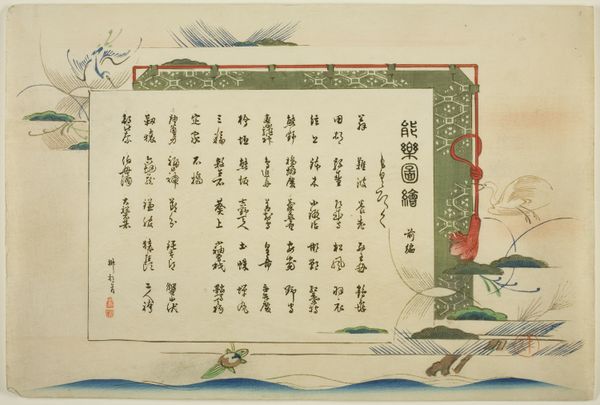 Editor: This is "Mushrooms and Chrysanthemums in a Basket" by Zunan. It's a beautiful, delicate print on paper. The composition is interesting, with the basket and flowers above the calligraphy. What can you tell me about the cultural context of this piece? Curator: Well, consider the public role of art in Japan at the time. This work likely circulated among a literati circle. The combination of imagery and calligraphy suggests a cultivated audience familiar with symbolism and artistic conventions. The chrysanthemums, for example, were associated with the Imperial family. Editor: So, was it making a statement? Curator: Possibly. Or perhaps participating in a visual language understood by a select group, reinforcing social bonds through shared aesthetic appreciation. What do you think the inscription adds to it? Editor: I hadn't considered it that way. I guess it’s less about direct political commentary and more about belonging and cultural identity. Curator: Precisely! And understanding that context is key to unlocking the work's potential meaning.