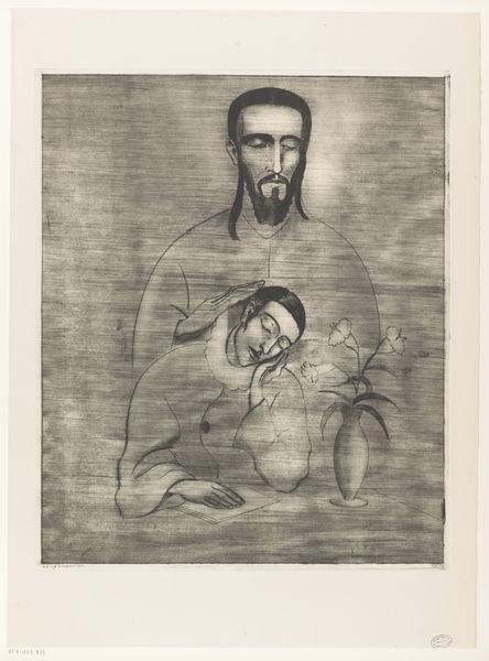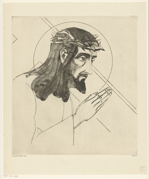 Lodewijk Schelfhout made this head of Christ as an etching in 1928, look at the way the ink has been used to construct different tones. The face is pale, almost absent, but the hair and beard are solid and dark; this is an art of contrasts. Look closely and you can see the expressive, nervous energy in the marks used to build up these features. There’s something almost comical in the way the beard and hair surround the stillness of the face. The crown of thorns looks more like some badly made basket, there is a kind of folk art sensibility at play here. I find myself thinking of Picasso’s drawings from the early 20th century, there's a similar reduction of form. Both artists allow us to see the subject anew. In this print, Schelfhout prompts us to meditate on suffering and transcendence. It is interesting to consider how the tools and techniques of printmaking allow artists to explore these themes of reproduction and meaning.
