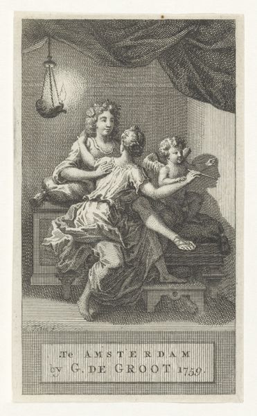 Curator: This is Hieronymus Cock’s engraving, “Maria met het Kind, Johannes de Doper en een engel,” created sometime between 1550 and 1570. Editor: The crispness of the lines immediately strikes me. It gives the figures a sculptural quality, as if they were carved from stone rather than simply drawn. Curator: Indeed. Cock, operating within the Italian Renaissance idiom, emphasizes idealized forms, a testament to its historical moment's specific social and religious values. The composition itself presents a dominant, maternal figure, challenging to accepted notions of power. Note how she is positioned above and larger than both children, suggesting her elevated role. Editor: The medium itself is intriguing. The meticulous process of engraving, the labor involved in transferring an image onto a metal plate—it all speaks to a deliberate and almost devotional act of production. The printmaking process itself has material implications. It's meant to be reproduced, and disseminated among many. Curator: Exactly! And to be spread means it was able to subtly disseminate ideology in a portable form to be sold and exchanged as commodities. The angel is not simply decorative; its presence signifies divine blessing upon Mary, thus perpetuating specific beliefs and shaping socio-religious roles for women and children in that era. Editor: I’m curious about that stone at her feet, too. And that column drum! The deliberate inclusion of the rock feels like it must indicate the foundation, but it is more raw as a construction material than the architectural elements around it. It disrupts the perfection just slightly. Curator: Good point. Those elements suggest the limitations of terrestrial power and mortal vision even amid the grand ideals they attempt to create. By grounding the ethereal vision in materiality, Cock comments on the tangible costs, or the ‘base material’ upon which spiritual belief must find ground. Editor: This also gives insight to the act of material selection itself. While we engage with the symbolic forms in these compositions, understanding what the work _is_, rather than simply what it represents gives it greater impact, especially when considering it in the market and devotional activities of its time. Curator: Thank you, I appreciate the reminder that historical interpretation and current perspectives are forever linked. By contextualizing artworks within a history of production and gender representation, we might better reflect and act more progressively today. Editor: And considering process lets us see the very nature of human ingenuity, what work looks like when its rendered permanent in this fashion. This gives greater perspective and context as our contemporary materials have proliferated into greater amounts than we’ve seen before.