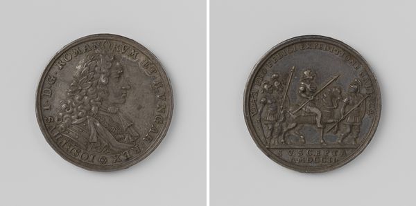 Editor: So, this medal, "Verwoesting van Heidelberg en schending van de keurvorstelijke graven door de Fransen," by Jan Smeltzing, from 1693, seems to depict a historical event with some serious symbolism. It’s quite striking how violence and power are intertwined in the imagery. What do you see as the key message being conveyed here? Curator: This piece speaks volumes about the intersection of power, propaganda, and the manipulation of historical events. Medals like this served as potent tools of political messaging. We must examine who commissioned it and to what end? Was it a lament, a rallying cry, or an attempt to demonize? Editor: It's interesting you mention political messaging. The devastation is palpable. Can you elaborate on the historical context and the narratives at play? Curator: Certainly. The desecration of graves – itself a fraught act – and the destruction of Heidelberg aren't simply recorded; they’re being interpreted. Consider the figures depicted: who are they meant to represent, and what social and political anxieties do they tap into? Think about it in terms of victimhood and aggression. Editor: I see. It's a loaded image designed to elicit a particular emotional response. But are there alternative readings? Curator: Absolutely. Whose story isn't being told here? Consider the perspectives of the French soldiers, the inhabitants of Heidelberg. Who has the power to record and disseminate history shapes our understanding of the past. How does it reflect on notions of national identity and cultural memory? Editor: This is incredibly thought-provoking! I didn’t consider it from so many angles initially. Thank you! Curator: My pleasure. Remember, these artifacts aren’t just beautiful objects; they're contested spaces where history, identity, and power collide.