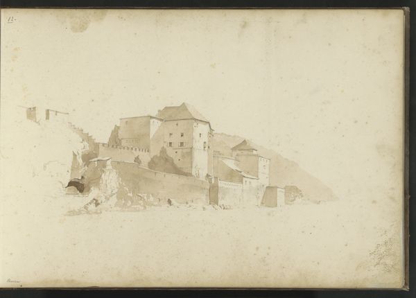 Editor: Richard Wilson's pencil drawing, "House of Pompey at Albano," created sometime between 1753 and 1756, presents a somewhat hazy landscape. I find it fascinating how he blends classical ruins with everyday life. What's your read on this piece? Curator: Hazy indeed, almost dreamlike! I see a real longing for the past, a touch of melancholy clinging to those ruins. It’s as if Wilson is asking us, "What survives of empires, of human ambition?" He uses this misty light to soften the contrast, creating an idyllic but still slightly haunting scene. What do you think he might have been saying about Britain through his Neoclassical lenses? Editor: I guess that through the use of Neoclassical elements, Wilson implies a reverence for historical foundations, but maybe it also warns against the ephemeral nature of power and earthly structures. Curator: Precisely! The decaying structure evokes the glory of the past but with a tinge of transience. Do you find that tension reflected in his composition too? Notice how the buildings merge with nature almost dissolving into it. Editor: Absolutely! The lack of precise lines reinforces that transient, fading quality. I guess the drawing becomes an expression not just of a place, but also of a state of mind? Curator: Yes! It's less about documenting the "House of Pompey" and more about evoking a feeling, an experience, an atmosphere where history, memory, and mortality dance together, what a delicate and powerful dance. Editor: So, looking at it again, the drawing feels more like an introspective contemplation. Curator: Precisely.
