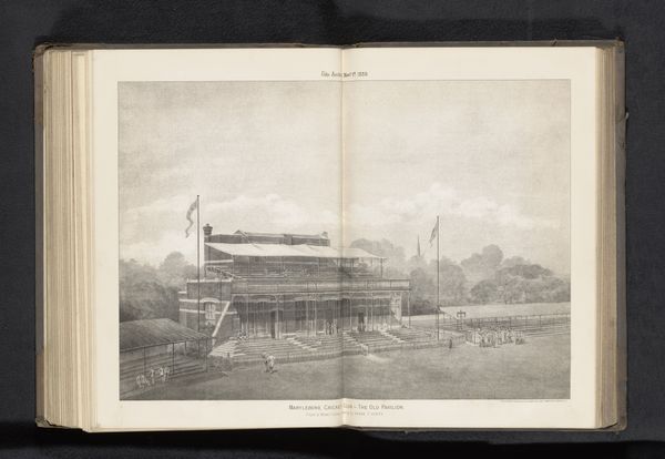 Curator: This print from 1801 is titled, "Plans, and Views in Perspective. With Descriptions, Of Buildings Erected In England and Scotland: and also an essay, to elucidate the Grecian, Roman and Gothic architecture, accompanied with designs." by Robert Mitchell. Editor: My first impression is a sort of exploded diagram, revealing layers of activity within a single, structured space. There's something clinical, almost surgical, in the way it slices through the building. Curator: It’s an elevation, of course, a very common form for architectural renderings, but it is unique because it shows the exhibition of Panoramas, so really an insight into how the public consumed landscape painting at the time. Look closely at the figures gazing at the various paintings…each a separate, staged reality. Editor: Right, the receding tiers offer depth, and the repeated figure allows you to witness each setting simultaneously. What strikes me is the contrast between the rigid geometry of the structure and the flowing naturalistic renderings in the interior. Curator: It's that dialectic between man and nature, a quintessential neoclassical theme. Architecture providing an artifical way to view nature and giving the perspective the eye might have when witnessing the world. Also notice the cultural significance embedded within; the viewer is literally placed "above" or in control of the scene itself. Editor: The artist presents perspective literally as well as metaphorically through color and texture. I keep coming back to this contrast, it seems highly structured at first and that initial severity melts into dreamlike images. The scale adds to this quality. The drawing invites a sense of architectural control but immediately allows room for more freedom. Curator: Mitchell provides us an insight into both the era’s aesthetic preoccupations but also its understanding of the natural world, that humans not only observe it but frame and, by extension, define its experience for an audience. Editor: A complex interplay of observation, manipulation, and the art of seeing… a really intriguing composition on multiple levels.