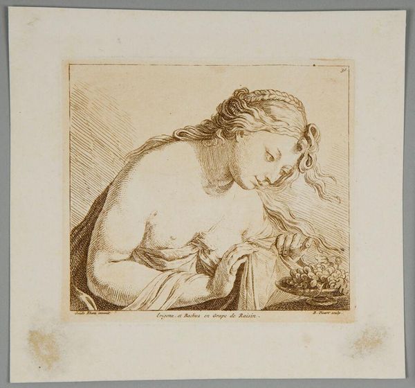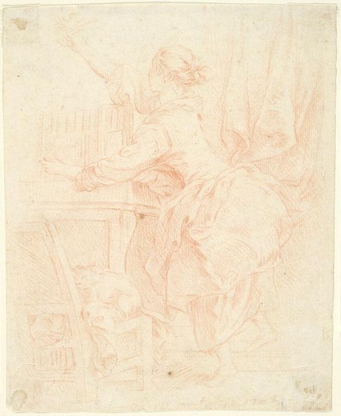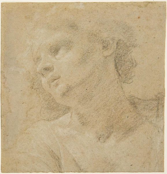 Curator: Cesare Gennari's small drawing, "The Praying Magdalene," captures a moment of profound introspection. The piece resides here at the Harvard Art Museums. Editor: There's such vulnerability in that downcast gaze, isn't there? It’s like peeking into a private, whispered conversation with the divine. Curator: Indeed. Observe the interplay of light and shadow, how Gennari uses the textured paper to create a sense of depth despite the limited tonal range. Editor: The sketchiness almost amplifies the emotion, doesn't it? It feels raw, immediate... like the artist was chasing a fleeting feeling, not just rendering a form. Curator: Precisely. The economy of line speaks volumes. We see a masterful understanding of form reduced to its most essential components. Editor: For me, it whispers of quiet strength, a fragile beauty found in the act of surrender. Curator: A fitting sentiment to conclude our reflections on Gennari’s delicate work. Editor: I'm left feeling like I've shared a breath with someone in prayer.