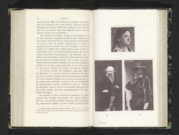 Here we see two photographs preserved within the pages of a book, capturing a woman with a mocking expression and a crying child. These stark images, despite their simplicity, evoke a wealth of historical and cultural echoes. The woman's upturned face and slight sneer is reminiscent of the ancient Gorgon Medusa, whose gaze could turn men to stone. This expression, a potent symbol of defiance and suppressed rage, recurs across centuries in various guises. In contrast, the weeping child embodies vulnerability and raw emotion, an archetype found in religious iconography, such as depictions of the Madonna in mourning. Consider how the image of the weeping child has evolved. From religious art to secular portraiture, this motif taps into our collective memory of innocence lost and the universal experience of sorrow. The child's tears, reflecting helplessness, engage viewers on a profound, subconscious level, evoking empathy and stirring deep-seated emotional responses. Thus, the woman’s sardonic sneer and the child's weeping reveal a cyclical progression. They reappear, evolve, and take on new meanings across different historical contexts, reminding us of the enduring power of symbols to express the range of human experience.