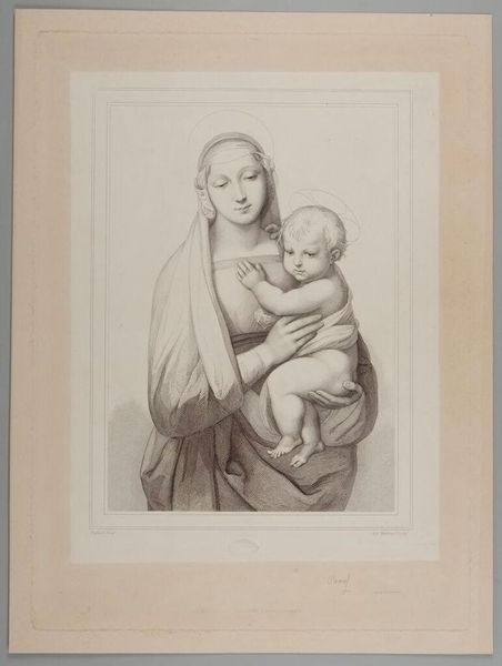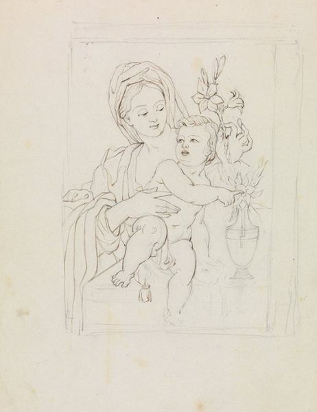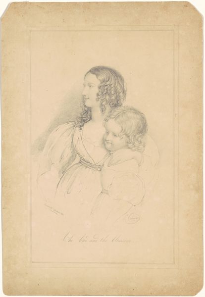Petrus Theodorus van Wijngaerdt created this drawing of a mother and child using graphite on paper. The artist coaxes out the subtleties of light and shadow using graphite, a material valued for its capacity to capture form through tonal gradation, making the figures appear almost lifelike. Looking closely, you can see the cross-hatching and delicate lines which define the forms, and the texture of the paper itself lends a tactile quality to the work. Wijngaerdt, working in the 19th century, engaged with traditions of portraiture, imbuing the image with a sense of intimacy. Consider, too, the labour involved in this kind of highly skilled drawing. It speaks to a culture that valued artistic skill, while reminding us of the countless hours of practice required to achieve such mastery. Paying attention to materials and processes invites us to appreciate the skill involved and social context of the work, challenging any divide between art and craft.