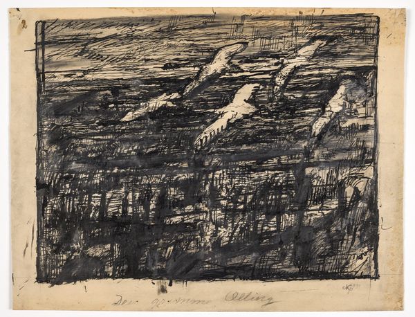 Curator: Before us, we have "Landscape near the Scheerhorn" by August Babberger, rendered with watercolor and paint on paper. Editor: It strikes me immediately as an unsettled landscape. The heavy blues and ochres clash, creating a feeling of disharmony. Almost a premonition of a storm, or perhaps the psychological landscape of someone on the edge. Curator: That emotional read is interesting. Structurally, note how Babberger uses the thick, almost frantic lines to delineate the forms. Observe how those lines contribute to the overall sense of movement and instability within the composition. Semiotically, these fractured lines may signify a deconstruction of traditional landscape art conventions. Editor: Right, but beyond the formal experimentation, isn't there a connection to be made to the societal anxieties of the early 20th century when rapid industrialization drastically reshaped our connections to nature? Perhaps Babberger's disturbed landscape is speaking to that collective unease. It's about the trauma inflicted on both the land and the psyche. Curator: I agree the thematic tension is present but look at the tension inherent in the color palette. The contrast of blues, greens and yellows pushes and pulls your eye throughout the image. There is a dynamic tension evident. Editor: And don't forget that Babberger himself experienced the horrors of war. Wouldn’t that context inevitably color our reading of such a chaotic scene? I wonder if those undulating lines and clashing colours symbolise trauma or displacement. This work feels incredibly raw, as though extracted directly from the artist's emotional landscape. Curator: I see that potential for trauma but ultimately this piece is successful because of its structural complexities and innovative implementation of Impressionistic landscape tradition into a new more expressive artistic terrain. Editor: Ultimately, whether we focus on the brushstrokes themselves or the larger social context, “Landscape near the Scheerhorn” refuses to let us passively observe the beauty of nature. Curator: Instead, it provokes a visceral experience. Editor: Yes, that feeling of nature unsettled.