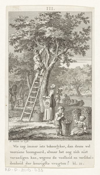 Francesco Bartolozzi created this print, “October,” in 1783 using etching and engraving. Its idyllic scene of an apple harvest offers a window into the social values of late 18th-century England. The image presents a vision of rural life, where a family cheerfully gathers apples; however, this idealized view obscures the realities of agricultural labor, class divisions, and the enclosure movements that displaced many rural communities at the time. Bartolozzi’s print can be seen as part of a broader cultural trend in which the English aristocracy sought to legitimize its power by presenting itself as the natural stewards of the land, obscuring the economic exploitation that underpinned their wealth. To understand the print's meaning, we can consult sources from the period, such as agricultural surveys, economic treatises, and even literature to reveal the complex relationship between the image, the social realities of the time, and the institutions that shaped artistic production. By analyzing the artwork in its historical context, we can better understand the politics of imagery and the social conditions that influence art creation.