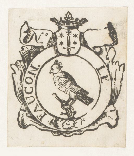 This anonymous engraving presents a vignette with a turkey and the coat of arms of the city of Haarlem. The composition centres on a circular frame encompassing the robust form of a turkey, meticulously detailed with dense cross-hatching to define its plumage. Above, the Haarlem coat of arms is flanked by scrolls, contributing to a symmetrical yet dynamic design. The interplay between the naturalistic rendering of the bird and the heraldic formality of the coat of arms creates a compelling tension. This tension invites a semiotic reading: the turkey, an exotic import, juxtaposed with the established civic symbol, prompts contemplation on themes of trade, cultural exchange, and the incorporation of the new into the old. The artist’s structural arrangement, placing the turkey within a circle adorned with text, transforms the animal into a symbol, ripe for interpretation. This piece highlights how an artwork, through its formal elements, engages with broader historical and cultural narratives, inviting us to reflect on how societies define and represent themselves.