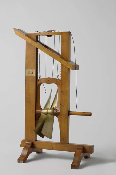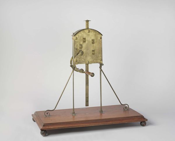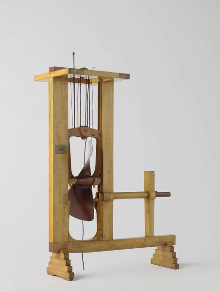 Editor: So this is "Model of a Life Buoy," from 1820. It's anonymous, and made of brass, metal, and wood. It has the feeling of some kind of odd scientific instrument... What do you see in it? Curator: This piece immediately makes me think about the Industrial Revolution and the changing relationship between labor, materials, and artistic production. It isn't exactly beautiful, is it? But it reveals so much about the value society placed on industry and technology at the time. Editor: So you're focusing more on its historical function as a potential device, rather than aesthetic appeal? Curator: Precisely. Consider the materials: brass, wood, metal. These weren't simply chosen for their aesthetic qualities. Instead, it is much more about durability, functionality, and the availability of these specific materials through contemporary manufacturing processes. Do you see it challenging the separation between fine art and practical craft? Editor: I see what you mean! I hadn't really considered the labor that went into its construction, and how different those methods were compared to creating traditional sculpture, for example. Curator: Think about the social context in which this was made. Lifesaving technology was becoming increasingly important alongside expanding maritime activities. This object serves as a reflection of those needs. Its production highlights the evolving role of craftsmanship and technological innovation in art. Editor: That's really fascinating. I was so caught up in seeing it as an object, I missed thinking about the bigger picture: of manufacturing, accessibility and cultural demands. Curator: Exactly. By considering the material conditions of its making and its intended function, we can understand this sculpture not just as a singular piece, but as a material embodiment of broader societal shifts. It is a tangible, manufactured emblem of its time. Editor: This makes me see how important it is to think about art in connection with wider social forces! Thanks.