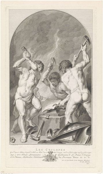 Editor: Guido Reni's painting, *Two Fauns in a Bacchic Dance*, captures a world of mythology through oil paint. The piece feels overwhelmingly exuberant; the figures practically leap off the canvas with chaotic glee. What draws your eye when you look at this work? Curator: Chaos, yes! But within that, look how Reni orchestrates these figures – a master of the dance, really. Do you see the echo of the tambourine’s circle in the composition itself? The Faun’s outstretched arm leads your eye towards a frenzy of bodies, barely visible. Reni seems to suggest there is revelry, but at what cost? Is it joyful celebration or is something darker lurking? Editor: I see what you mean. It’s almost unsettling, like there's a shadow in the brightness. Is that why the work is considered Baroque? Curator: Exactly. The Baroque loves this kind of tension. Notice the dramatic use of light, *chiaroscuro*, it isn't merely decorative – the strong contrast almost carves out a sense of underlying unease, doesn't it? Where are the shadows here? And why aren’t they further expanded across the landscape? Editor: So, beyond the surface level of dance and celebration, the painting invites us to consider this unease between light and shadow in Reni's life and work? Curator: Perhaps in *our* lives as well! How different are these Bacchic revelers from our current popular obsessions? Is that sense of freedom truly freeing? What shadows lurk in the height of celebrations today? Editor: That's given me a lot to reflect on; it’s more than just a festive scene! Curator: Agreed, I find I keep finding new things here, even after years of looking at this and similar art of this period. The more I ponder what’s within me, the more emerges in art, and in those who have looked before.