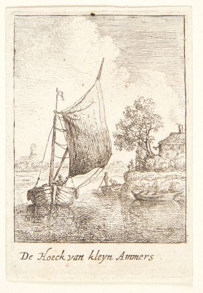 Curator: Before us is Jean-François Millet's etching, "A Vessel Under Sail," created around 1847. It's a study in ink on paper, currently residing at The Art Institute of Chicago. Editor: My immediate impression is one of contained restlessness, a sketch vibrating with captured, frenetic energy. The tonal range, however muted, pulls the eye directly to the scene. Curator: Note how Millet employs hatching and cross-hatching to establish depth and volume, lending shape to both the turbulent waters and the sails catching the wind. The contrast between light and shadow is particularly striking in rendering the hull. It’s an object lesson in maximizing expression through minimal means. Editor: But expression for what purpose, exactly? The mid-19th century was a period of vast transformation fueled by imperial projects, and this ship feels less like a romantic subject than an agent in global flows of people, capital, and goods extracted and exploited by colonial regimes. Do you feel the artist shares this perspective, or perhaps the patron commissioning the image? Curator: Whether Millet consciously intended a critique or celebration of these "flows" is less evident to me than the way he constructs an aesthetic problem and works towards its solution within a limited frame. He has created a pleasing tension between the stability of the central form—the ship—and the instability suggested by the sketched and scribbled elements of wind, water and weather. Editor: The visual structure of the work cannot be divorced from its historical circumstances. Considering this piece alongside contemporaneous accounts of maritime activity in France reveals the socio-economic stratification implicit in Millet's rendering. It cannot be considered divorced from French involvement in things like the trans-Atlantic slave trade. Curator: Your argument compels attention, yet it also underscores the beauty inherent in the print's delicate linework, how those marks alone create this compelling interplay of stability and dynamism. I keep thinking of the precision with which each line helps define the ship's interaction with its environment. Editor: Precisely; its relationship with a human-imposed structure of ownership and exchange. Hopefully considering those forces, not just its immediate context or composition, deepens the viewers engagement with the work. Curator: Indeed. Such dual perspectives greatly enhance our perception. Editor: An insightful exchange; art benefits from this discourse of approaches.