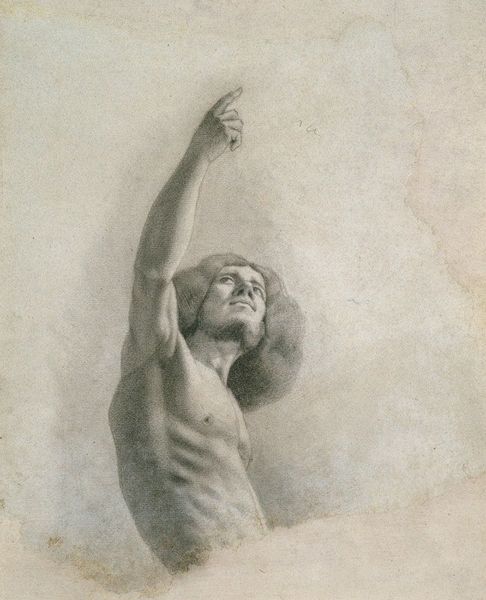 Editor: Today, we're looking at "Icarus" by Odilon Redon. It's an oil painting depicting the tragic figure from Greek mythology. I’m immediately struck by the overwhelming use of red and orange hues, lending this sense of heat and… almost claustrophobia. What are your first impressions, particularly regarding Redon’s choice of color? Curator: The near-monochromatic palette indeed dictates our initial perception. Observe how Redon employs subtle tonal variations within that fiery spectrum. Note the composition, with Icarus centrally placed. His gesture, seemingly shielding his eyes, directs our gaze toward the radiant object he holds. Is it a setting sun or perhaps…a wound? Consider how that singular bright focal point interacts with the atmospheric quality of the whole. Editor: That's interesting! I hadn’t considered it a wound. Do you think this focus on a specific compositional structure mutes any other readings that one could have? Curator: On the contrary, the severe composition—the upward thrust of the figure countered by his implied fall, the play of light and shadow—functions as a visual armature. Upon it, viewers are free to project myriad interpretations. The strength is how all of these artistic components result in unity. Editor: So the effectiveness is dependent on its elements working together? I guess before this, I wouldn't have understood just *how* connected the artistic elements can be! Curator: Precisely. Understanding the interconnectedness is essential. Every formal element contributes to the artwork's overall impact and potential for nuanced readings. That interplay, ultimately, is where its power resides.
