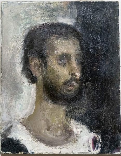 Curator: Immediately striking, isn't it? A sense of melancholy radiates from this small, intimate painting. Editor: Indeed. We're looking at an "Untitled" portrait rendered in oil paint from 1925, crafted by Romualdo Locatelli. Its current home is in a private collection. Curator: The texture alone commands attention; observe the pronounced impasto, particularly in the facial structure. It grants a tactile quality, a sort of rough-hewn intimacy to the sitter's face. Editor: Consider its socio-historical implications: painted in the interwar period. There’s a fragility there—is this portrait perhaps of a returned soldier still lost within? Note the romantic ideal of masculine beauty typical of that time but undercut by his world-weariness. Curator: Precisely, but consider also the color palette – browns and ochres. Locatelli employed such muted tones masterfully to create a certain restrained energy. Notice how light falls across his face? This dramatic illumination emphasizes, rather than obscures, his deep-set eyes. It brings our own gaze, inextricably, back to meet his, which have only averted to introspection. Editor: What strikes me is how private this painting feels. Although ostensibly "Untitled," and held in private hands, this does feel less like the celebration of a grand, successful figure—and more like an attempt to grapple with internal change, both a product of and resistant to his era. The artwork invites, perhaps demands, our quiet contemplation as viewers and historians. Curator: A fitting reflection. This artist captures more than simple representation. He exposes a raw human element – an almost pained awareness - in paint itself, challenging assumptions and forcing introspection of ourselves. Editor: An eloquent note upon which to conclude. Thank you.