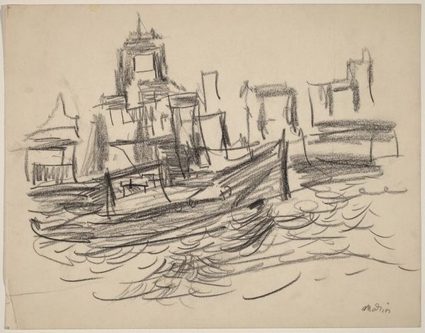 Editor: This is James Abbott McNeill Whistler's etching, "Limehouse." It depicts a busy dock scene, rendered with incredibly fine lines. There's a real sense of the working class, hard labor, and industry. How do you interpret the social commentary within this piece? Curator: Whistler often focused on everyday life, particularly the working class, offering a glimpse into the social realities of his time. Consider the political climate of Victorian England, where industrialization led to both progress and immense disparities. How does Whistler portray the dignity or lack thereof, of these laborers in Limehouse? Editor: I hadn't considered it in that context, viewing it more as a snapshot of a place. I now realize how important it is to appreciate the piece’s historical framework. Curator: Exactly! Seeing art as a mirror reflecting societal dynamics allows us to engage with it critically and understand its relevance even today.