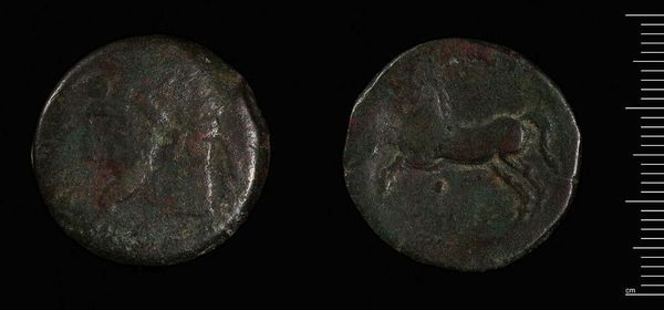 Curator: Here we have a coin of Delphi, minted under Faustina I. Editor: It looks incredibly worn, doesn't it? Almost like a ghostly imprint of its original design. Curator: Indeed. As a Roman Empress, Faustina's image on currency was vital for projecting imperial power and legitimacy. Coins served as propaganda, circulating not just economic value but also political messages. Editor: And those messages were inherently tied to gender and power. To control the image of a woman ruler – how she was perceived and remembered – was crucial in a patriarchal society. Curator: Precisely. The Delphi connection here is also fascinating. Delphi was a major religious center, and this coin highlights the intertwining of imperial authority and religious significance. Editor: It is compelling how such a small, seemingly insignificant object can hold so much historical weight. You have to wonder who touched it, and what they thought of the Empress as they did. Curator: It reminds us that even everyday objects can be incredibly revealing about the past. Editor: Absolutely, it’s like holding a piece of ancient dialogue in your hand.