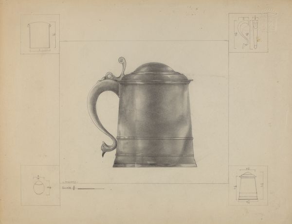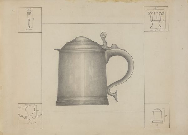 Henry Meyers rendered this pewter mug on paper, an object that seems simple yet echoes through time. Its cylindrical form and sturdy handle are not merely functional, they are imbued with the cultural significance of communal drinking and social rituals. Consider the motif of the drinking vessel. It appears in ancient Greek symposiums, medieval taverns, and even modern-day gatherings. The cup, as a symbol, transcends its practical purpose. Think of the Holy Grail, its significance evolving from a simple chalice to a potent symbol of spiritual quest and purity. The mug’s handle, elegantly curved, invites the hand, symbolizing connection and conviviality. This gesture echoes the clasped hands in Roman funerary art, signifying unity and remembrance. Such gestures speak to our collective memory, engaging viewers on a subconscious level, evoking feelings of warmth and belonging. Thus, this pewter mug is more than just a vessel; it is a carrier of cultural memory, continually resurfacing and evolving across different historical contexts.