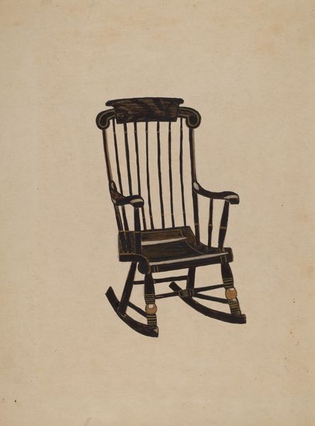 Genevieve Sherlock made this painting of a ‘Hitchcock Chair’. It’s like she’s set out to capture the very idea of a chair. The black and tan paint is laid down flat and simple. Look closely, and you’ll see how the artist has depicted the texture of the woven seat, each stroke considered. It makes me think about the way a folk artist might build up a picture, piece by piece. The real magic is in the details: those small circular embellishments painted in gold. They bring a certain rhythm to the whole composition. They remind me of the way a pattern repeats in a quilt or a piece of folk art pottery. I’m reminded of the work of Bill Traylor, another artist who found beauty and meaning in the everyday. Like Traylor, Sherlock invites us to see the world with fresh eyes, finding art in the simplest of forms.