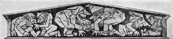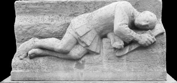 Niels Larsen Stevns made this plaster relief, called "Harvest. Two Nude Men Gathering Sheaves of Grain," and I immediately think about labor, not just as an action but as a process of constant refinement. The tactile nature of the plaster, the way the artist's hand is so evident in the textured surfaces, gives the impression that the artist is grappling with the material, trying to pull forms out of it. The angularity and simplified shapes add to this feeling of raw energy. Look at how the bundles of grain are rendered with these rhythmic, parallel lines - it’s almost like a musical score! That kind of repetition, for me, speaks to the cyclical nature of farming and the never-ending rhythms of life. The nudity, a radical choice given the context, throws us back to antiquity; but at the same time, there is something modernist and forward looking in the artist’s approach, a bit like Constantin Brancusi. What do you think?