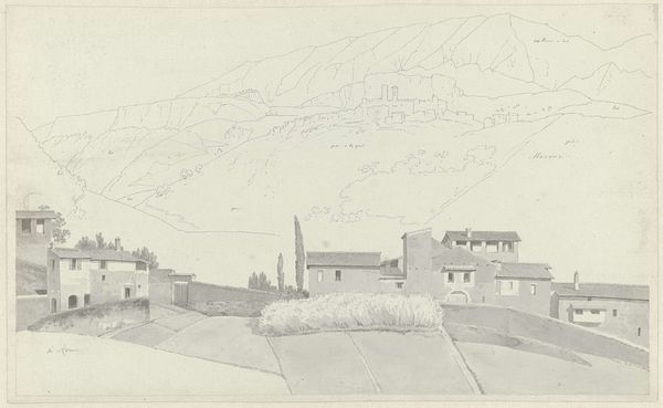 Knip has here, too, combined two totally unrelated studies. The ‘background’ is formed by a summary sketch of the monastery near Vicovaro, a town just northeast of Rome. Over this he drew a view of the porter’s lodge of the Villa Borghese in Rome, a structure, no longer extant, whose core consisted of a medieval tower.