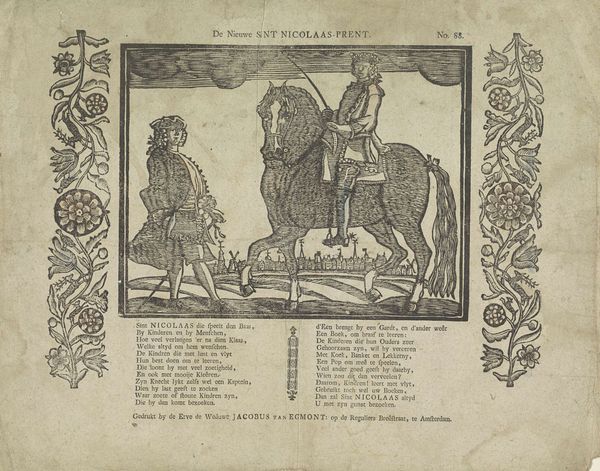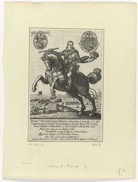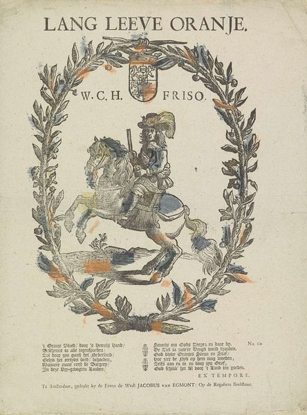 This print of Willem V, made by Johan Noman, depicts the stadtholder on horseback, framed by symbolic elements. The cherubic figures and floral motifs resonate with a long tradition of allegorical representation, evoking notions of divine favor and natural abundance associated with leadership. The equestrian portrait itself carries a weighty cultural memory, harking back to Roman imperial imagery and Renaissance ideals of power. Think of Marcus Aurelius' statue in Rome, it resurfaces in countless forms across centuries. The horse becomes a symbol of command and nobility, a visual shorthand for authority. Consider the recurring motif of the mounted ruler, from ancient equestrian statues to modern political iconography. Each iteration layers new meanings onto the old, reflecting shifting cultural values and power dynamics. The enduring appeal of this image points to our deep-seated psychological need for leadership, a force that continues to engage us on a subconscious level. It is an echo that continues to reverberate.