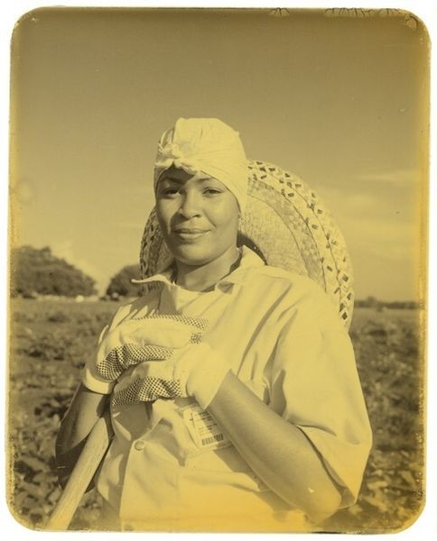 Curator: The title of this work is "Een Chinese familie," or "A Chinese Family" in Dutch. It’s a vintage print photograph, likely taken sometime between 1900 and 1915. Editor: There's a stark stillness about this image that draws me in. The neutral tones lend an almost timeless quality to the photograph. I'm curious about the story held within. Curator: Absolutely, the symbolism here is quite potent. Consider the woman with the large parasol—a symbol of protection, perhaps, or status. Her patterned clothing also carries layers of meaning related to social identity and cultural pride. Editor: The man, by contrast, appears more simply dressed, yet the burden he carries, both literally with the child and perhaps figuratively, suggests another narrative. Do you think there is a political commentary embedded here regarding class structure? Curator: Possibly, the relationship to the landscape feels crucial. We are standing at the vantage point of a witness within that social structure; an outsider to some degree. We might ask what position or bias do we hold looking at the scene as mediated by this technology? The child becomes a potent symbol for generational continuation and possibly even oppression. Editor: And there's a level of detachment in their gaze directly at the camera that begs to be considered, confronting the viewer and compelling questions of cultural exchange, perhaps even exploitation inherent within ethnographic portraiture. Curator: These visual elements, especially viewed today, ask us to consider the weight of history in this constructed scene and to reckon with how visual representation affects public consciousness and propagates ideas about entire cultures. Editor: Examining this vintage print urges us to move beyond mere aesthetic appreciation, demanding that we engage critically with both our role as viewers and the photographic history shaping our perspectives. Curator: Indeed. A family snapshot, yet resonating with layers of deeper meanings about cultural continuity and social power that history has bestowed.