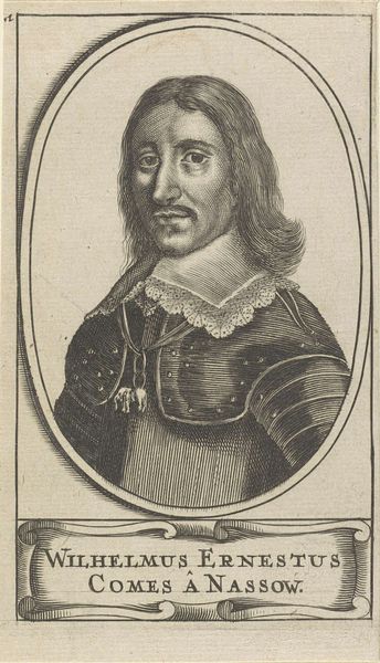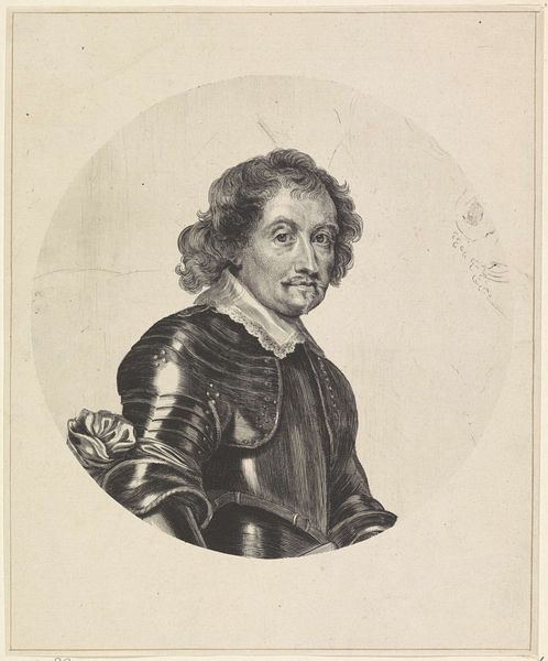 This print of Johan Maurits, Count of Nassau-Siegen, was made anonymously, using a technique called engraving. This process involves carefully cutting lines into a metal plate, inking the surface, and then using immense pressure to transfer the image to paper. Looking closely, you can see how the density and direction of the engraved lines create a sense of form and texture, from the sheen on his armor to the delicate lace of his collar. Engraving was not only a means of artistic expression, but also a crucial method for disseminating information and reproducing images, playing a vital role in shaping public opinion and cultural identity. The detailed work required a high degree of skill and precision, reflecting a time when craft and artistry were deeply intertwined. Considering the materials, making, and context of this print, it's clear that it was more than just a portrait. It was a carefully crafted object with social significance that blurred the boundaries between art, craft, and communication.