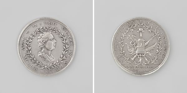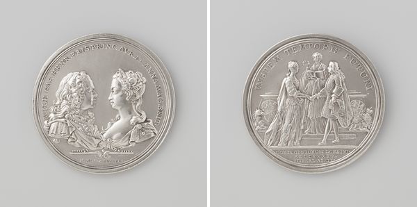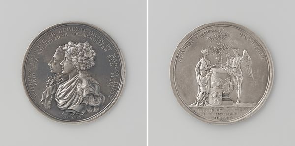 This silver medal commemorating the marriage of Willem Frederik and Fredrika Louise Wilhelmina was created by Johan George Holtzhey. It’s a piece that encapsulates the political and dynastic strategies of 18th-century Europe. On one side, we see the conjoined profiles of the couple, capturing their likenesses and social standing. Turn the medal over, and you will see a classical allegory with symbols of abundance and marital harmony. These images were carefully chosen to convey a message of prosperity and continuity. However, beyond the surface, the medal hints at the restricted roles women occupied. Fredrika Louise Wilhelmina's primary value, like that of many aristocratic women of her era, lay in her ability to secure alliances and produce heirs. The medal's visual language is that of power, but it also shows the gendered expectations of the time. It’s a reminder of how personal lives were entwined with broader political objectives, with individual identity often taking a backseat to the demands of state.