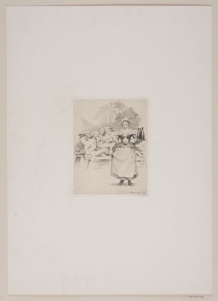 Johan Huizinga made this drawing, titled "1811/The Dutch flag continues to fly on Desima," using pencil, likely during the early 20th century. Huizinga's delicate lines capture a moment in 1811 on the artificial island of Deshima in Nagasaki, Japan. Here, the Dutch flag waves defiantly. Deshima was a trading post and, for a time, the sole gateway between Japan and the West. The drawing reveals the complex power dynamics at play. A Dutchman, pipe in hand, gestures expansively, seemingly oblivious to the Japanese figure working beside him. What does it mean to draw a Dutchman as large and centered, contrasted against the quiet, smaller figure of the Japanese man? This image is imbued with colonial undertones and touches on the intersection of race, power, and cultural exchange during that time.