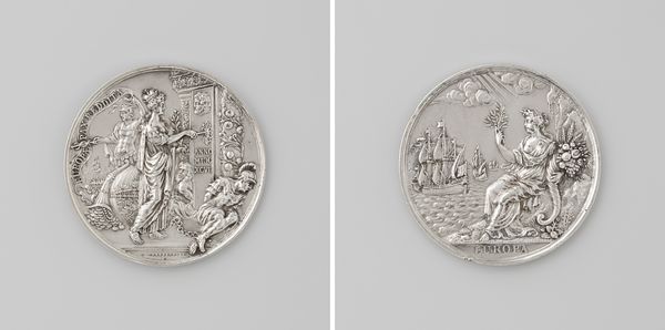 This silver Vroedschapspenning was made by Theodorus Victor van Berckel, an artist born in 1739. Here we find the heraldic lion, a motif stretching back through millennia, symbolizing courage, nobility, and royalty. Note how these lions support Rotterdam's coat of arms. The image is deeply rooted in heraldry, emblems of identity and power. As far back as the ancient Near East, the lion was associated with kingship and divine power, from the Lion Gate at Mycenae to the biblical Lion of Judah. Consider how this symbol has been passed down. The lion motif evolves, adapting to new cultural contexts while retaining echoes of its ancient power. Here, the lions’ presence evokes a sense of civic pride and historical continuity. They aren’t merely decorative; they actively engage with our collective memory, stirring feelings of strength. The image’s emotional power lies in its ability to connect us to a deeper narrative. The lion, a symbol loaded with centuries of meaning, resurfaces in Rotterdam, transformed yet still potent, reflecting the city’s own enduring strength.