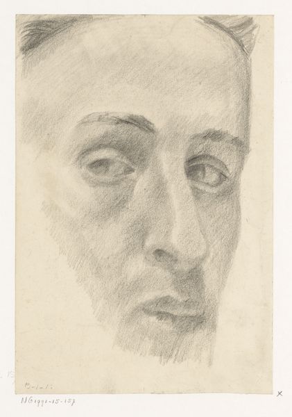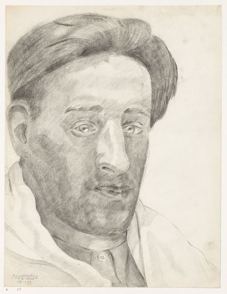 This is Cor van Teeseling's self-portrait, made with graphite on paper on January 31st, 1940. The artist has captured his likeness with an economy of means. Graphite, after all, is among the humblest of art materials. Yet, its very ordinariness lends this image its power. Van Teeseling’s precise control over line weight allows him to build up the image through careful gradations. Notice how the subtle shading around the eyes and mouth conveys a sense of quiet introspection. He is looking inward, a young man facing an uncertain future. The choice of graphite also speaks to the artist's engagement with the social realities of his time. During the interwar period, many artists turned away from the perceived excesses of oil painting. They embraced drawing as a more direct, accessible medium, one that could capture the everyday lives of ordinary people. In this light, Van Teeseling’s self-portrait can be seen as a poignant reflection on the artist's place in a rapidly changing world. It’s a reminder that even the simplest of materials can be used to create profound and moving works of art.