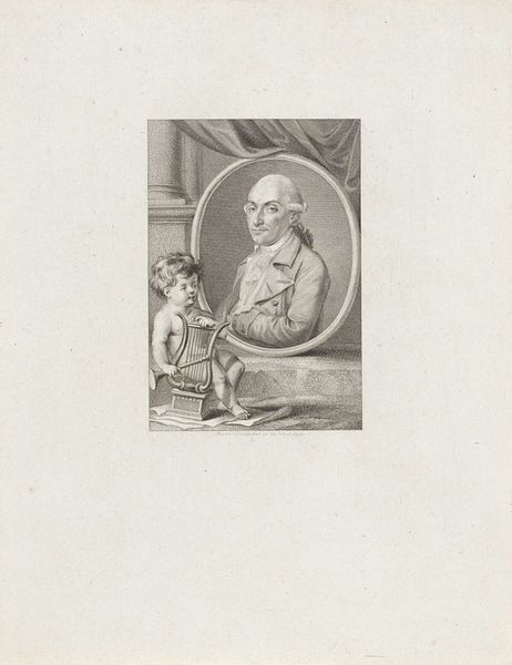 This is Reinier Vinkeles's portrait of Jan Gildemeester Jansz, made with etching and engraving. These processes involve cutting lines into a metal plate, inking the surface, then wiping it clean so that ink remains only in the incisions. High pressure is then applied to transfer the image to paper. The appeal of printmaking, especially in the 18th century, was that it allowed for relatively cheap reproduction, and therefore wider distribution of imagery. Notice the intricate detail, achieved through skilled manipulation of tools and materials. The texture of the paper itself also plays a role, catching the ink in subtle ways. The image romanticizes Jansz with an abundance of cherubs, musical instruments, books, and other items associated with the fine arts. Consider the labor that went into creating this image, both the engraver’s skill and the paper maker’s craft. By attending to materials, making, and context, we understand that the value of the artwork lies not just in its aesthetic appeal but in the human effort embedded within it.