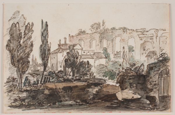 Jens Petersen Lund captured this Roman prospect with pen and wash, offering us a glimpse into the layered history of Rome. The architecture, dominated by a structure crowned with a cross, speaks to the city's enduring religious and political significance. The cross, a symbol of sacrifice and redemption, is a motif we see repeated across cultures. In ancient Egypt, the ankh, sharing a similar form, represented eternal life. Over time, these symbols merge and evolve. Here, the cross atop the Roman building signals the city's Christian identity, yet it resonates with echoes of older, pagan beliefs, a palimpsest of cultural meanings. This intersection of old and new evokes a powerful sense of cultural memory. It reminds us how symbols persist, adapt, and continue to shape our understanding of the world, engaging our subconscious with the eternal echoes of human history.
