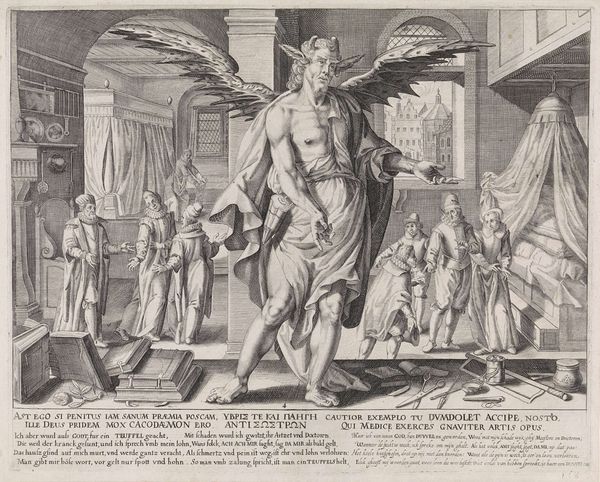 This engraving of Saint Cecilia at the Organ was made by Zacharias Dolendo around 1600 in the Netherlands. The image depicts Saint Cecilia, the patron saint of music, playing an organ surrounded by angels singing from sheet music. The engraving creates meaning through its visual codes, cultural references, and historical associations. The inclusion of musical notation and instruments reflects the cultural importance of music in the Netherlands at the time. The angelic figures refer to Christian religious themes. The fashion and architecture in the image create a sense of grandeur and luxury, reflecting the wealth and power of the Dutch Republic during its Golden Age. We can see references to the relationship between religious institutions and artistic patronage. The artwork invites us to consider the role of art in shaping our understanding of the world. To understand it better, we might research the history of music in the Netherlands, the role of religion in Dutch society, and the patronage of the arts by wealthy individuals and institutions. Art is contingent on its social and institutional context.